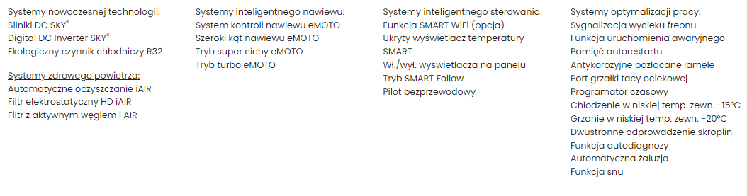 Minimalistyczny, ponadczasowy design klimatyzatora Rotenso® Elis, grafitowa obudowa i panel frontowy imitujący taflę ciemnego szkła podkreślają prestiżowy charakter urządzenia. Klimatyzator ma zwartą, kompaktową obudowę zbliżoną do prostopadłościanu. Już w standardowym wyposażeniu klimatyzatora Elis jest filtr z aktywnym węglem. Predysponuje to jednostkę do montażu w pomieszczeniach narażonych na występowanie odorów (nieprzyjemnych zapachów pochodzenia biologicznego, dymu papierosowego, zapachów kuchennych itp.). Klimatyzator Rotenso® Elis posiada klasę energooszczędności chłodzenia A++ i posiada wiele przydatnych w codziennym użytkowaniu funkcji takich jak: tryb super cichy, tryb snu, programator czasowy, tryb smart follow czy też tryb turbo. Wszystkimi funkcjami sterujemy za pomocą estetycznego pilota. Dodatkowo model ten możemy doposażyć w moduł WiFi i sterować klimatyzatorem za pomocą smartfona.