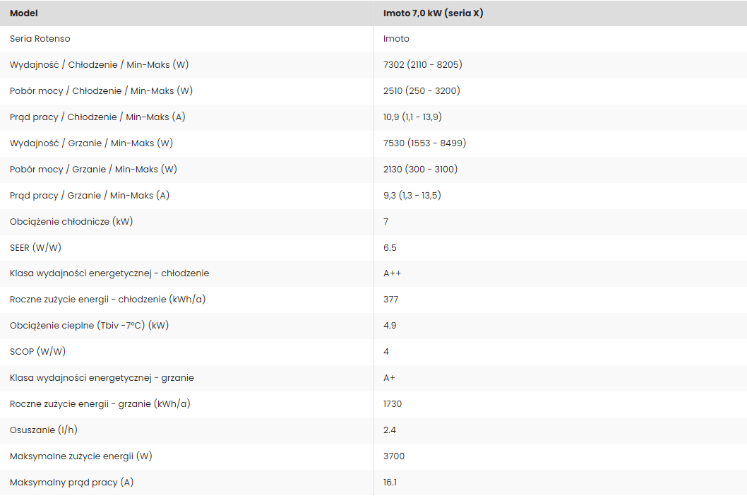 Wydajność / Chłodzenie / Min-Maks (W): 7302 (2110 – 8205)