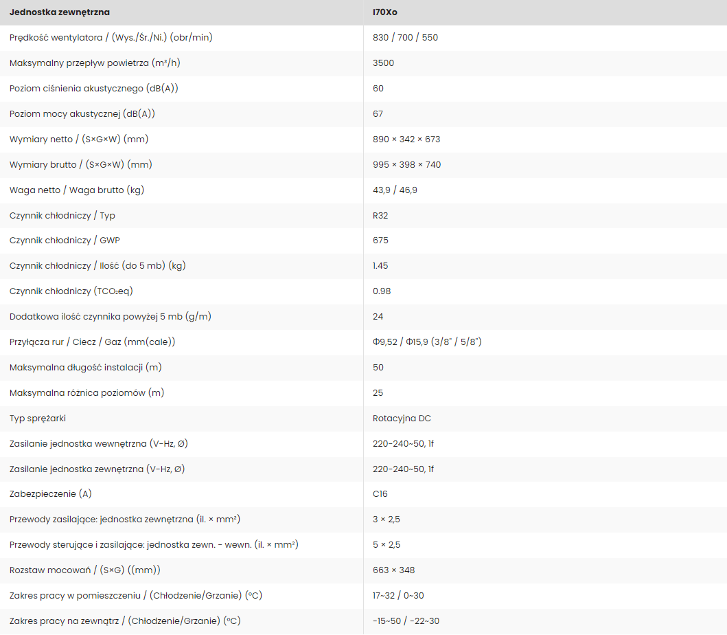 Uwaga: Jednostka zewnętrzna stanowi komplet z jednostką wewnętrzną I70Xi.