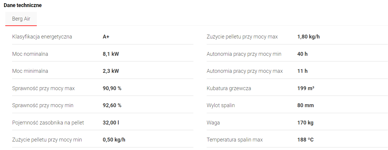 Piecyk na pellet Berg od MCZ – wersja Air – nadmuch na jedno pomieszczenie