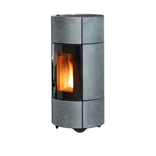 Piecyk na pellet wykonany w całości z kamienia Serpentino o minimalistycznym wyglądzie. Bez widocznych na froncie kratek. Ciepło wydostaje się przez jego górą część. Sterowany inteligentnym systemem Maestro.