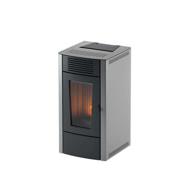 Piecyk na pellet małej mocy i nowoczesnym wyglądzie. Wykonany ze stali i żeliwa. Boczne metalowe elementy dostępne w kilku kolorach. Górna pokrywa z eleganckiej grubej stali.