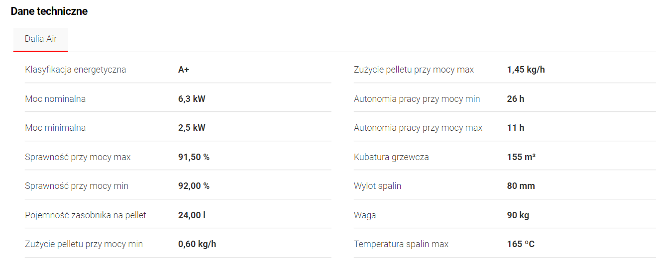 Piecyk na pellet Dalia od Red – wersja Air – nadmuch na jedno pomieszczenie