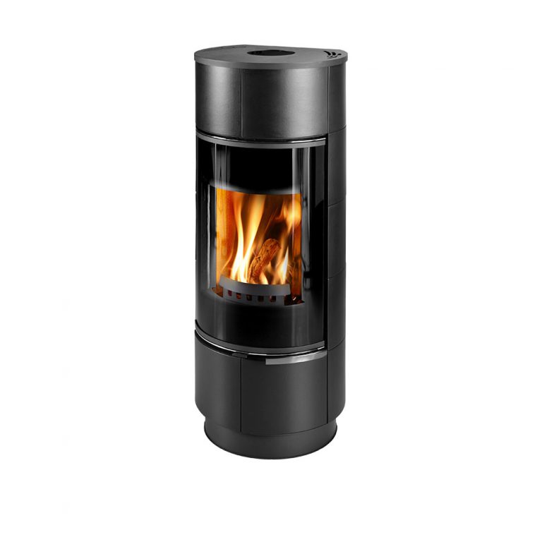 Wnętrze wyłożone wermikulitem dla zapewnienia skutecznego i czystego spalania drewna. Wykonany z blachy pomalowanej proszkowo na kolor czarny oraz pięknych czarnych kafli. Idealnie wpasowuje się w nowoczesne i minimalistyczne wnętrza. Zintegrowany panel konwekcyjny umożliwia umiejscowienie pieca w bliskiej odległości od ściany.