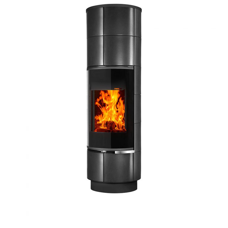 Wnętrze wyłożone wermikulitem dla zapewnienia skutecznego i czystego spalania drewna. Wykonany z blachy pomalowanej proszkowo na kolor czarny oraz pięknych grafitowych kafli. Idealnie wpasowuje się w nowoczesne i minimalistyczne wnętrza. Zintegrowany panel konwekcyjny umożliwia umiejscowienie pieca w bliskiej odległości od ściany.