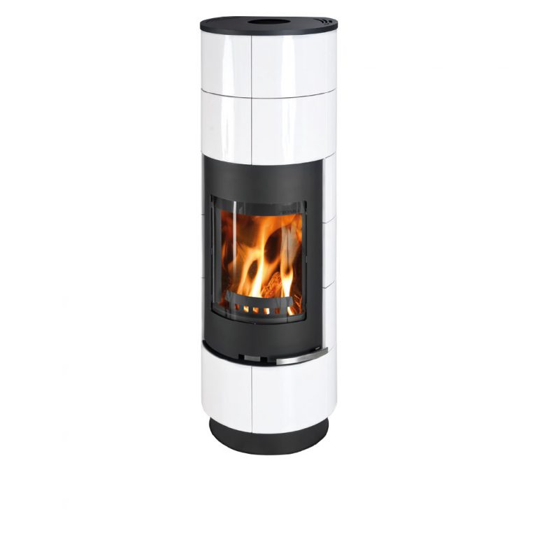 Wnętrze wyłożone wermikulitem dla zapewnienia skutecznego i czystego spalania drewna. Wykonany z blachy pomalowanej proszkowo na kolor czarny oraz pięknych białych kafli. Idealnie wpasowuje się w nowoczesne i minimalistyczne wnętrza. Zintegrowany panel konwekcyjny umożliwia umiejscowienie pieca w bliskiej odległości od ściany.